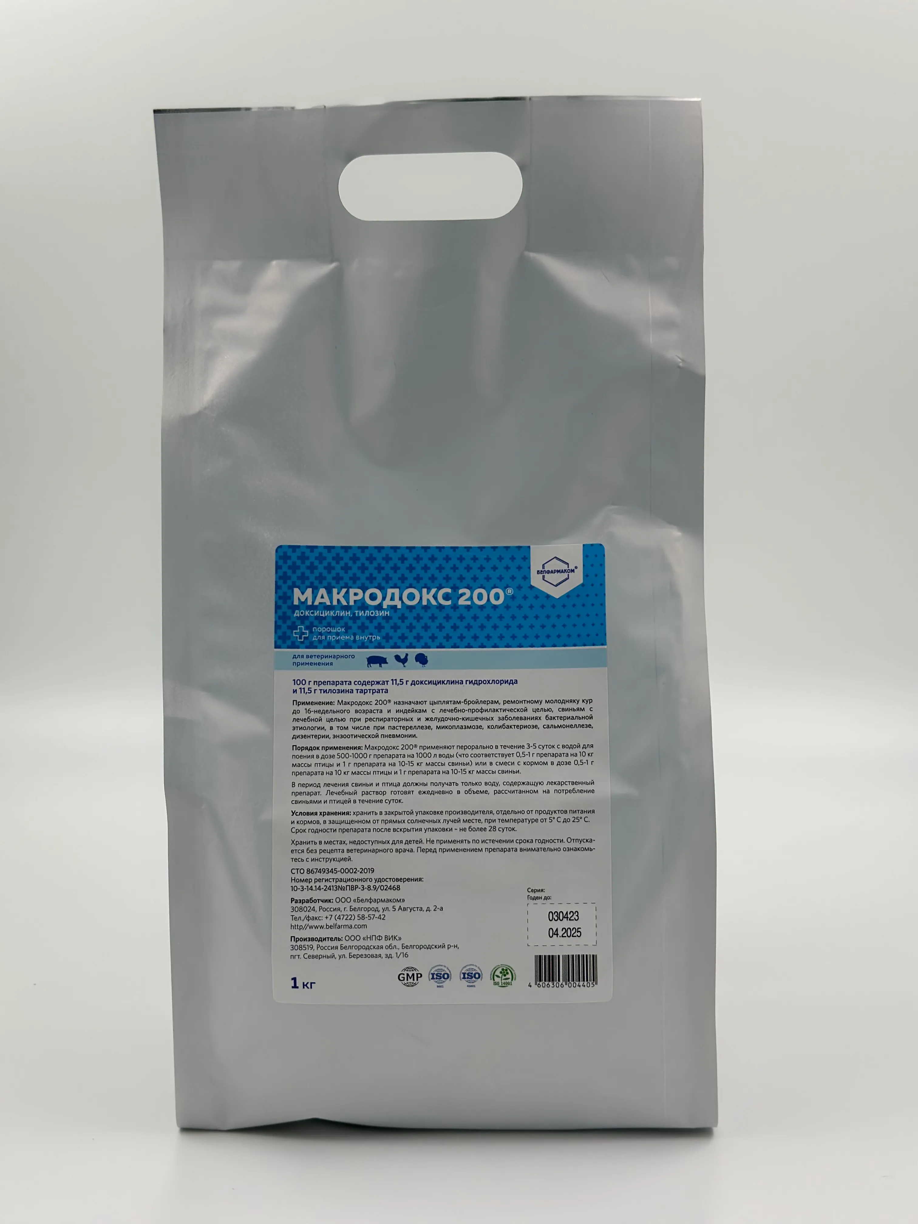 Порошок для орального применения. Антибиотик широкого спектра действия для лечения и профилактики бактериальных заболеваний сельскохозяйственной птицы.