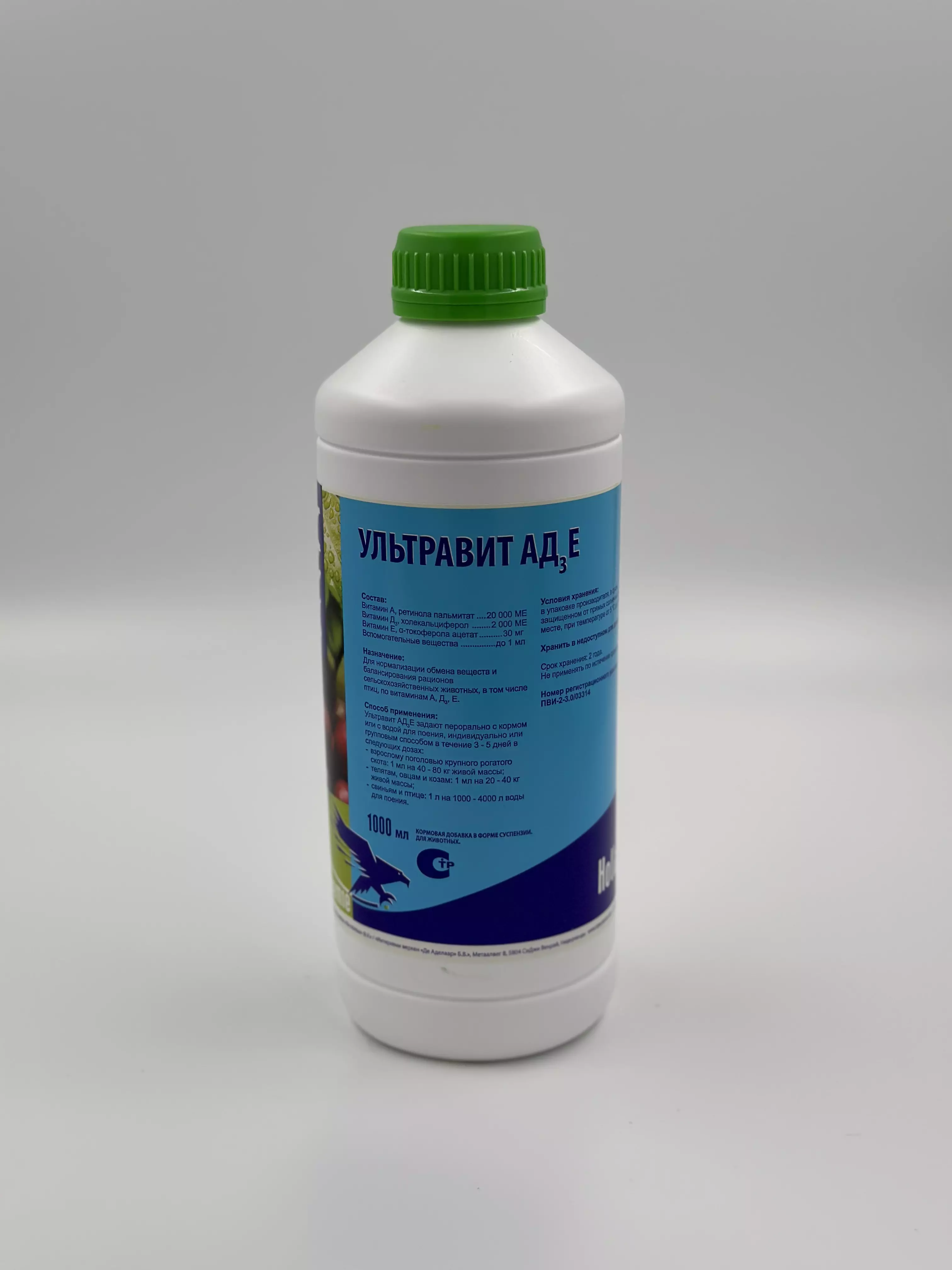 Кормовая добавка для нормализации обмена веществ и балансирования рационов сельскохозяйственных животных, в том числе птиц по витаминам А, Д3, Е.